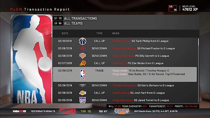 Остановились мы на моменте окончания игры с Хьюстоном, которую мы проиграли. Остался всего один день до дедлайна, и я решил не давать никаких послаблений. Если компьютер предложит мне выгодный обмен Богдановича, то я соглашусь. А свой обменный лимит я уже исчерпал.