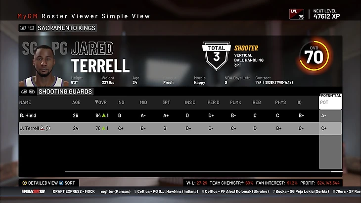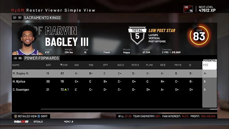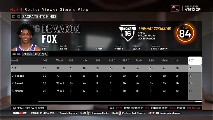 Начнем мы, традиционно, с первых номеров команды – разыгрывающих. По Фоксу все и так понятно: стартовый PG, который в будущем станет очень сильным. Тиг у нас ровно до момента окончания его контракта, неплохой бекап, идет в команде 6 игроком. Тем более считается ветераном, если он дальше сильно не сдаст, то можно будет подписать на минималку. Возможно. Далее идут Фаррел и Мейсон. Честно говоря, я не знаю на кого из них сделать ставку. Фаррел на год старше, но по характеристикам он лучше, контракт у него на следующий год на 3.15 миллиона. У Мейсона же контракт новичка на 1.62 миллиона. Оба с опцией команды. Я больше склоняюсь к Фаррелу. Все-таки для меня сейчас лучше синица в руке, чем потенциал Мейсона. Поэтому в межсезонье я буду отказываться от Мейсона, но будет интересно последить за ним, вдруг куда-нибудь подпишут.