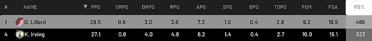 Игроками месяца стали Ирвинг и Лиллард, вот их статистика: