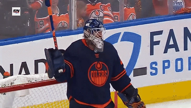 Зато какой же голевой получится третий период, где команды на двоих забросили шесть шайб. Тэйвз сократил отставание, но вот следом Хаймэн уже оформил дубль и все, и снова Эвз отставали в две шайбы. Но когда это пугало Колорадо? На третьей шайбе, залетевшей в ворота Смита, у голкипера Ойлерз стали сдавать нервишки. Он еще пытался что-то предъявить арбитру.