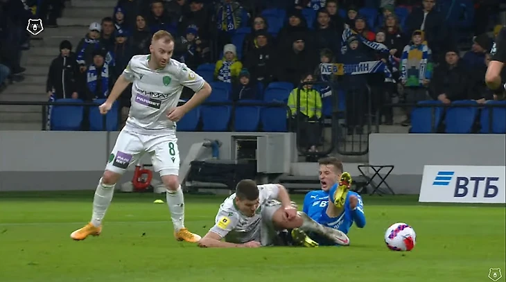 А вот на повторе видно, что если нарушения измерять в Скопинцевых (из матча против красно-белых), то здесь ровно один Скопинцев — т.е. Евгеньев нехотя задевает ногой Каноте. Разочарую комментаторов, но в данном случае VAR проверял не само нарушение, а где оно произошло. Я вот честно удивляюсь, как можно работать комментатором, что даже на повторе не видеть происходящего?🤦♂️