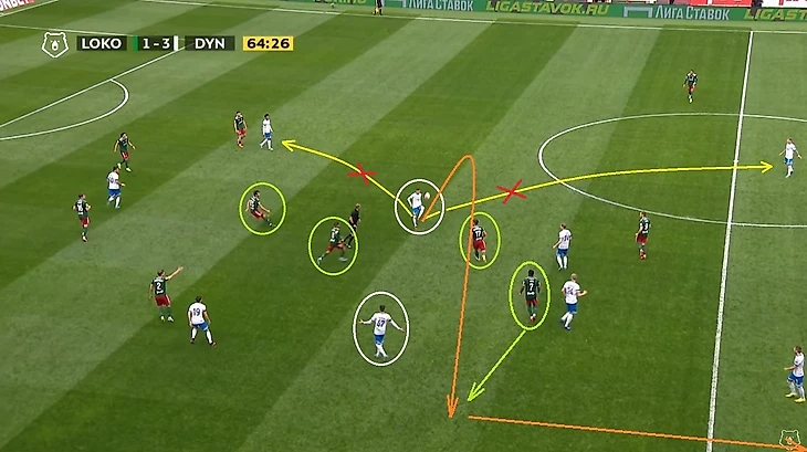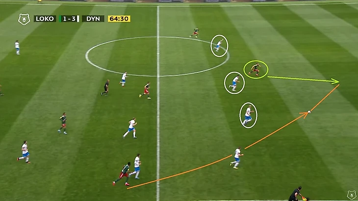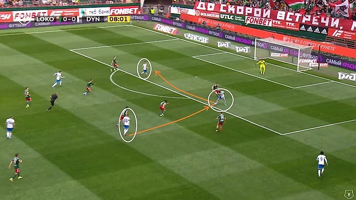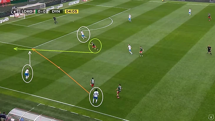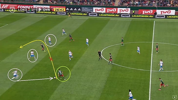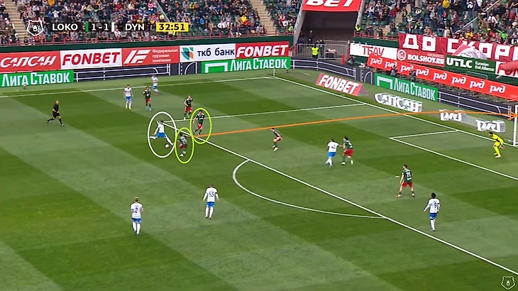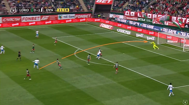 Быстро открыв счёт, Динамо продолжало уверенно контролировать мяч, однако периодически случались провалы в центре, ставшие уже типичными для нашей команды. В этот раз нападающего Локо подвела техника.