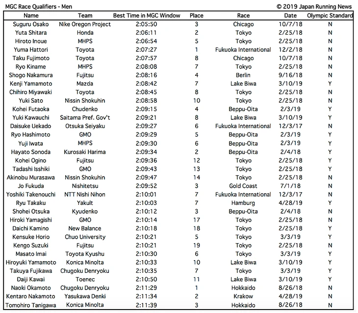 Для понимания конкуренции и плотности результатов в Японии: в 2018 году сразу 26 человек сбегали марафон быстрее олимпийского норматива, из них 16 быстрее 2:10