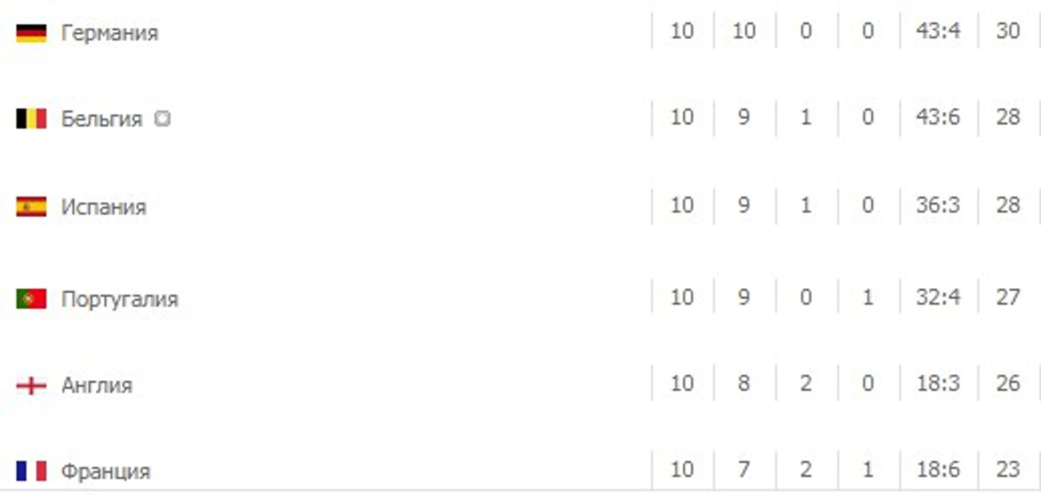 Сравним показатели бельгийцев с исконно мировыми сборными последних десятилетий. По набранным очкам западноевропейцы уступили лишь немцам. И если бы не тот спасённый матч с греками, то подопечные Мартинеса шли бы со стопроцентным результатом. Тут бельгийцы далеко позади оставили даже новоиспечённых чемпионов Европы , что также не может не радовать.