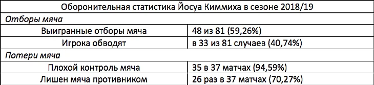 Взглянем на оборонительную статистику Йосуа Киммиха в сезоне 2018/19. В расчет брались такие показатели, как: отборы мяча и потери мяча, на которые и делал упор Нико Ковач в своем интервью после матча с «Вердером».