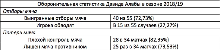 Для большего интереса сравним эту статистику со статистикой Дэвид Алабы, через чей фланг обороны, атаки соперников проходят реже, чем через фланг Киммиха