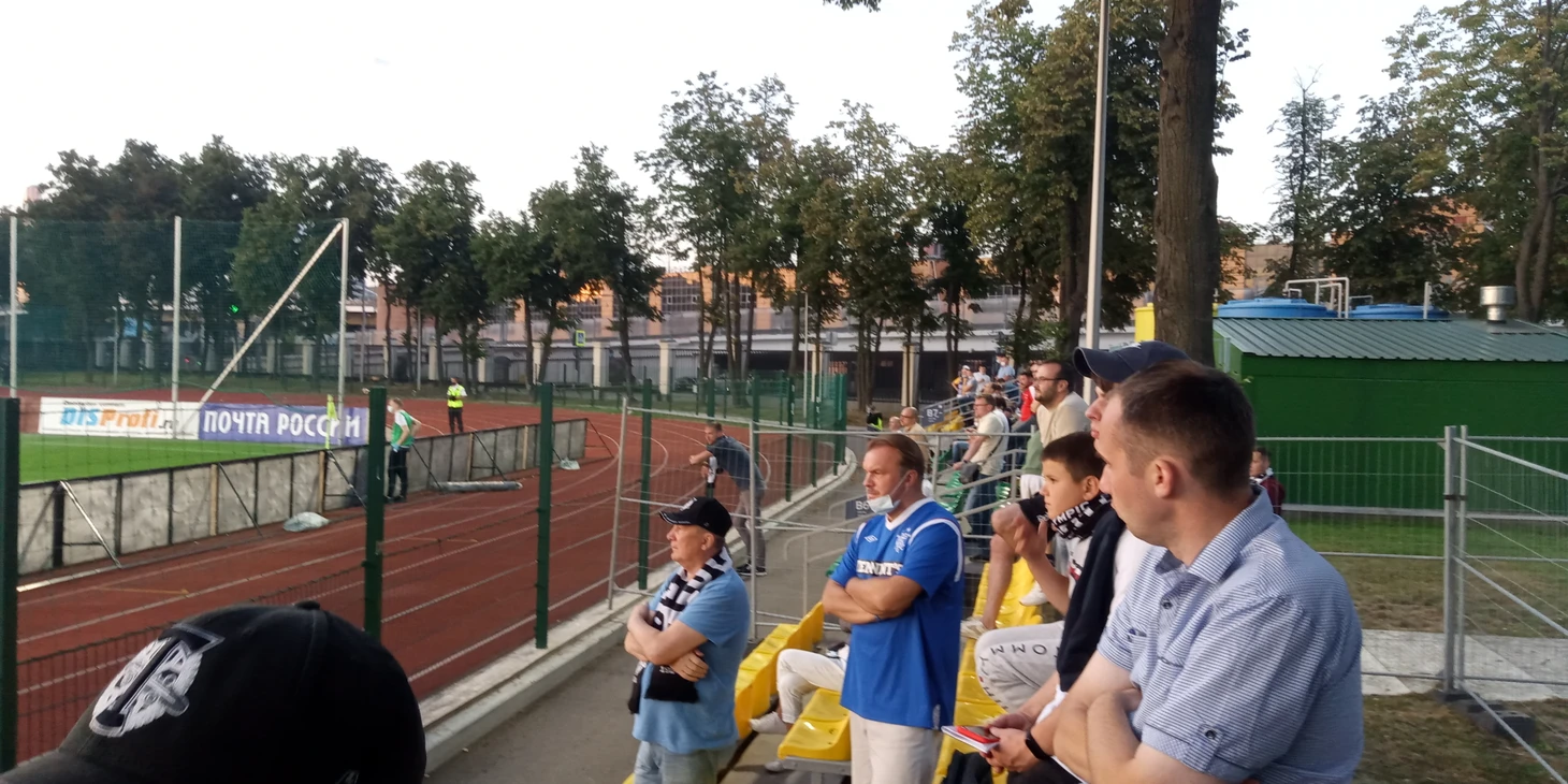 Второй тайм. Я пересел ближе к воротам Балтики. Там же заметил болельщиков в синих футболках, калининградцев было совсем немного, привлек внимание парень в футболке Глазго Рейнджерс. Видимо, где-то должен быть Селтик.