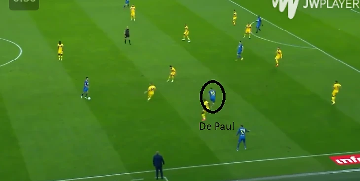 Находясь в финальной трети, Де Пауль имеет тенденцию варьироваться между тем, чтобы вывести на ударную позицию партнёра или взять игру на себя. Он не из тех игроков, которые очень часто открываются в глубине, но он любит, когда мяч у него в ногах.