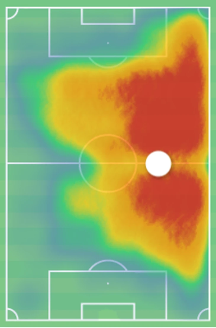 Большинство его передач и проходов также происходят из фиксированных ситуаций, ранних рывков из правого полуфланга или через хорошо сбалансированные глубокие передачи.