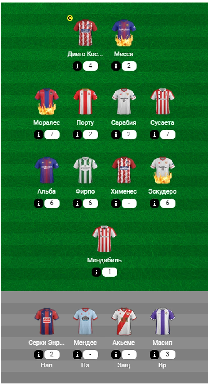 Тут всё одновременно и просто и сложно: из-за травм и переноса игры в Вальекасе сходу понятно кого менять, так что за борт отправляются Мендибиль, Сусаета и поломавшийся Эскудеро.