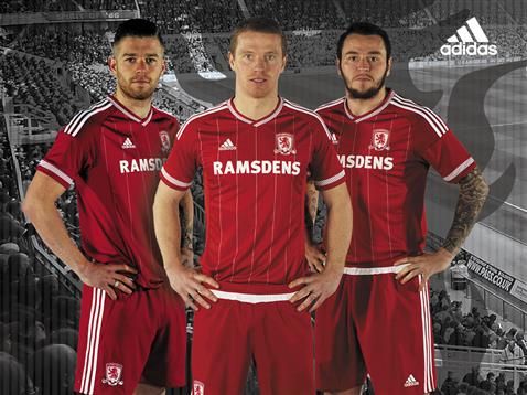 На этот раз ребята из Адидаса представили нетипичные комплекты формы для Мидлсбро. Домашний комплект выполнен полностью в красных цветах — традиционной белой полосы нет и в помине. Зато появились вертикальные тонкие белые полосы, и это очень напоминает умбровскую форму Саутгемптона образца сезона 2012/13.