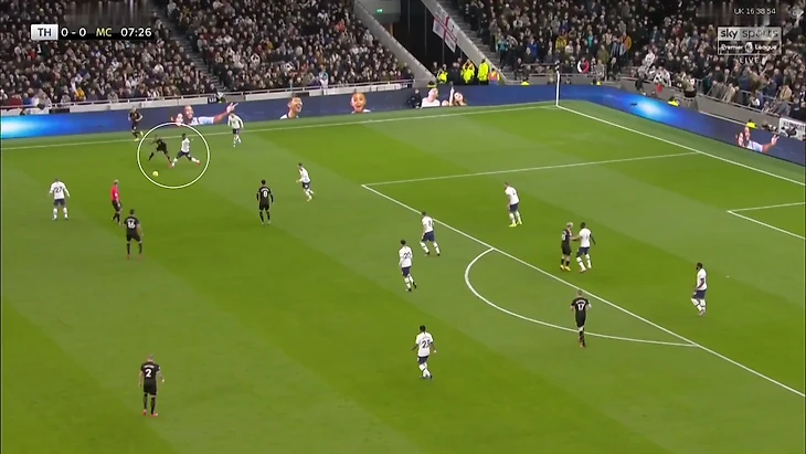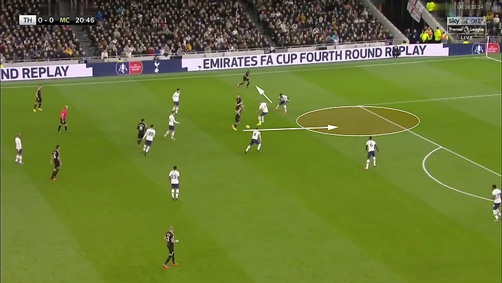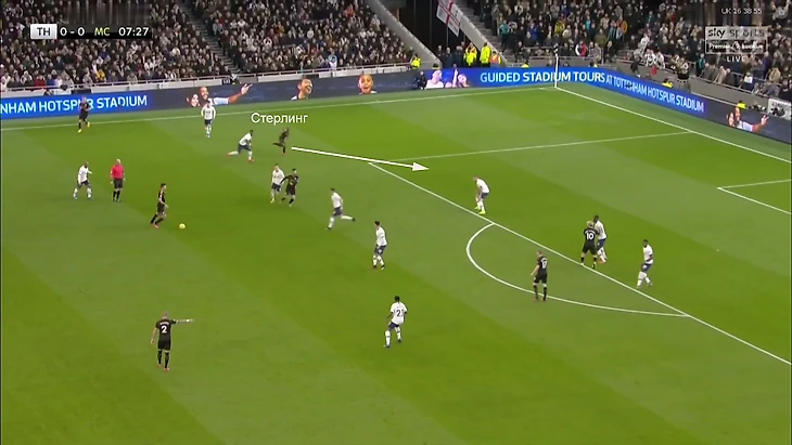 8. Совокупность этих факторов привела к рисунку, в котором почти все действия проходят на половине поля «Тоттенхэма». Там «Сити» обнаружил две проблемы, которые помогали регулярно создавать остроту.