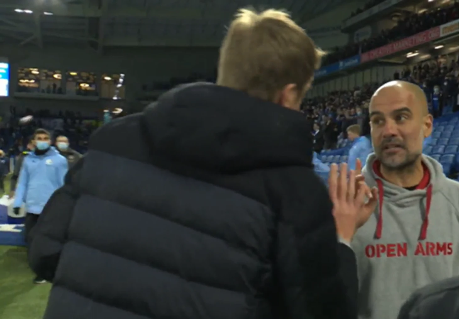 Гвардиола в прошлом сезоне несколько раз называл Поттера лучшим английским тренером. Пеп в восторге от атакующего стиля «Брайтона»: «Как зритель, я люблю наблюдать за такими командами. Мне нравится смотреть, как играет «Брайтон». Как экс-футболист, я бы с удовольствием играл в такой команде. Грэм Поттер показал всем другим тренерам, всему футболу, что необязательно быть фаворитом, чтобы проявлять храбрость, хорошо играть в футбол. Я очень им восхищаюсь. Надеюсь, что он сможет добиться результатов, которые помогут им остаться в Премьер-лиге, потому что то, как он играет, очень помогает мировому футболу».