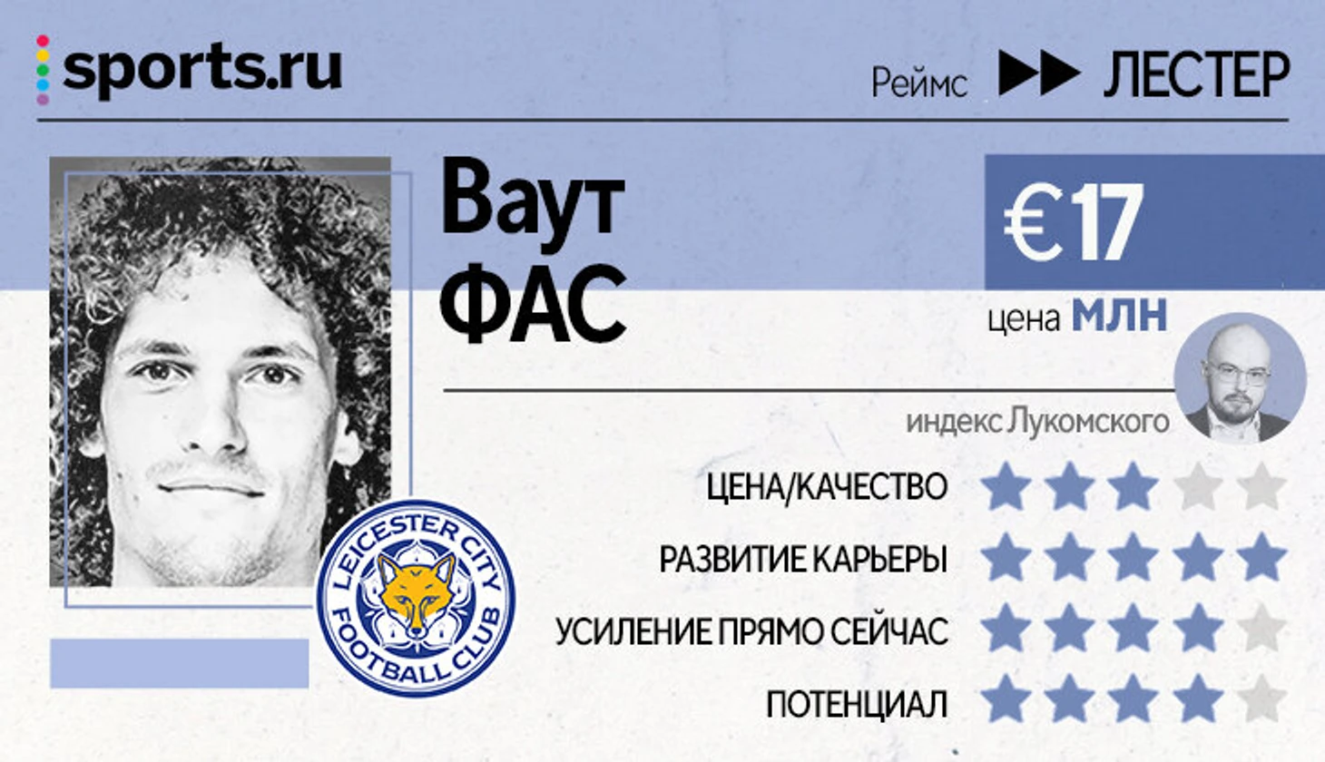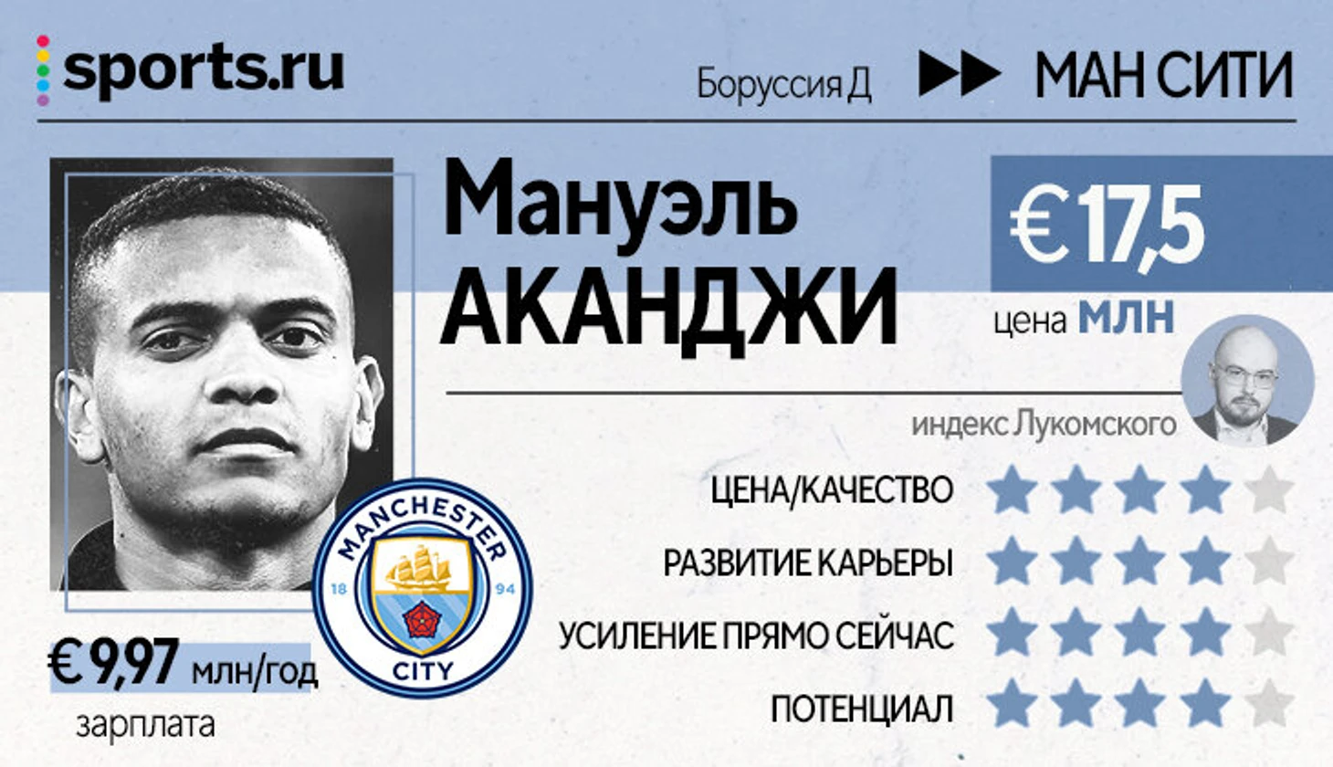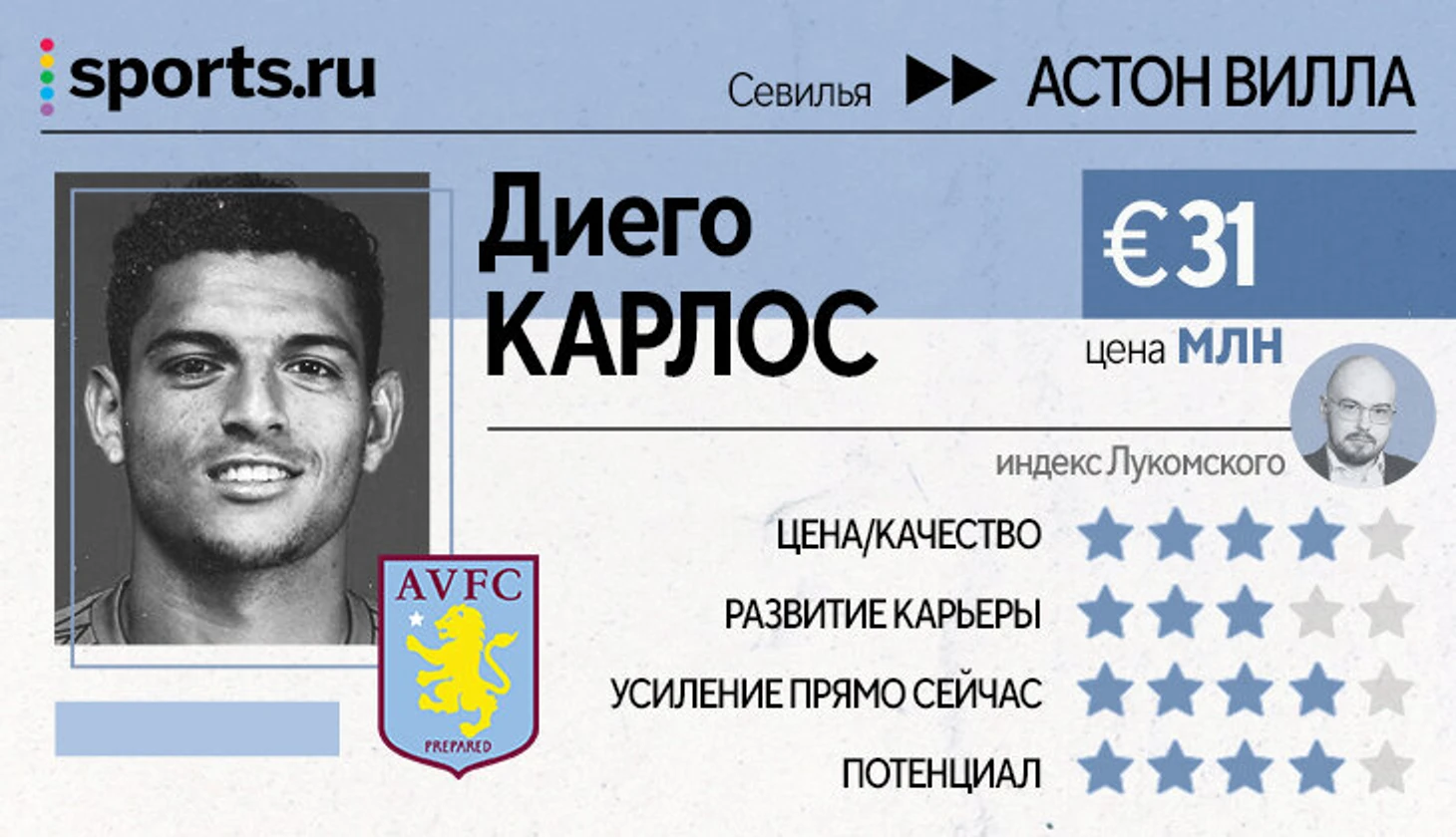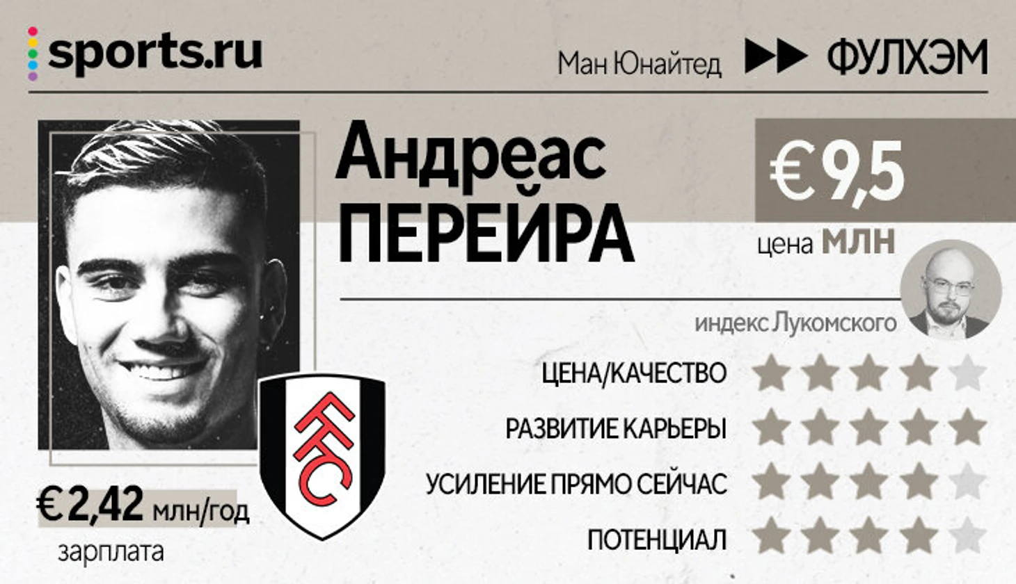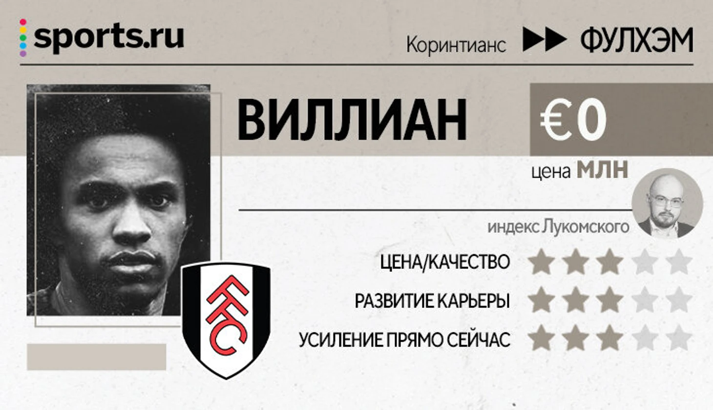 Цена/качество – оценка ресурсов, затраченных на игрока, без оглядки на новый клуб и условия.