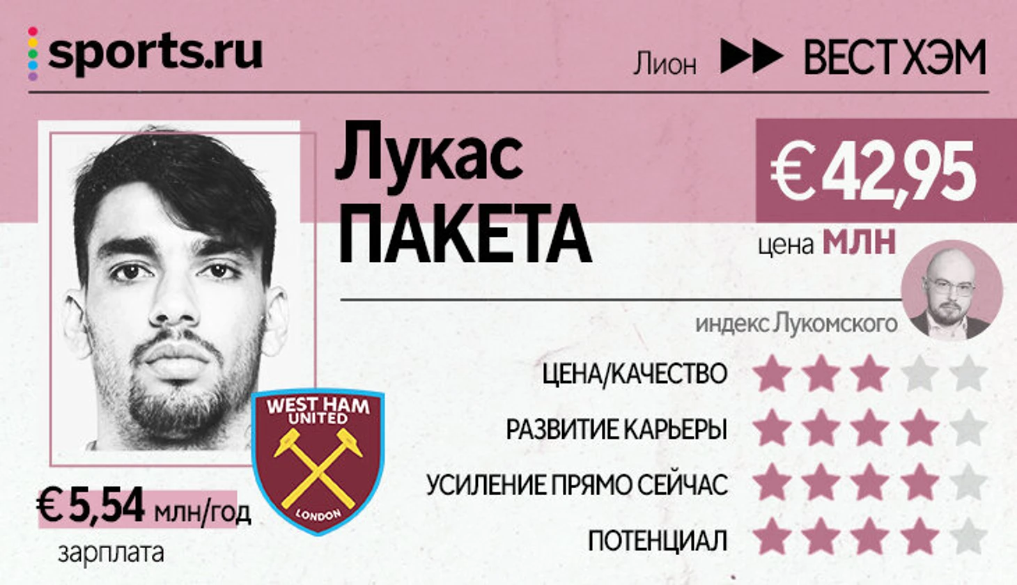 Один из самых элегантных игроков Европы и в то же время самая работоспособная десятка Лиги 1. Просто потрясающее усиление для «Вест Хэма», где пробег – одна из ключевых метрик, но игроки из атакующей четверки в схеме 4-2-3-1 получают много свободы для импровизации.