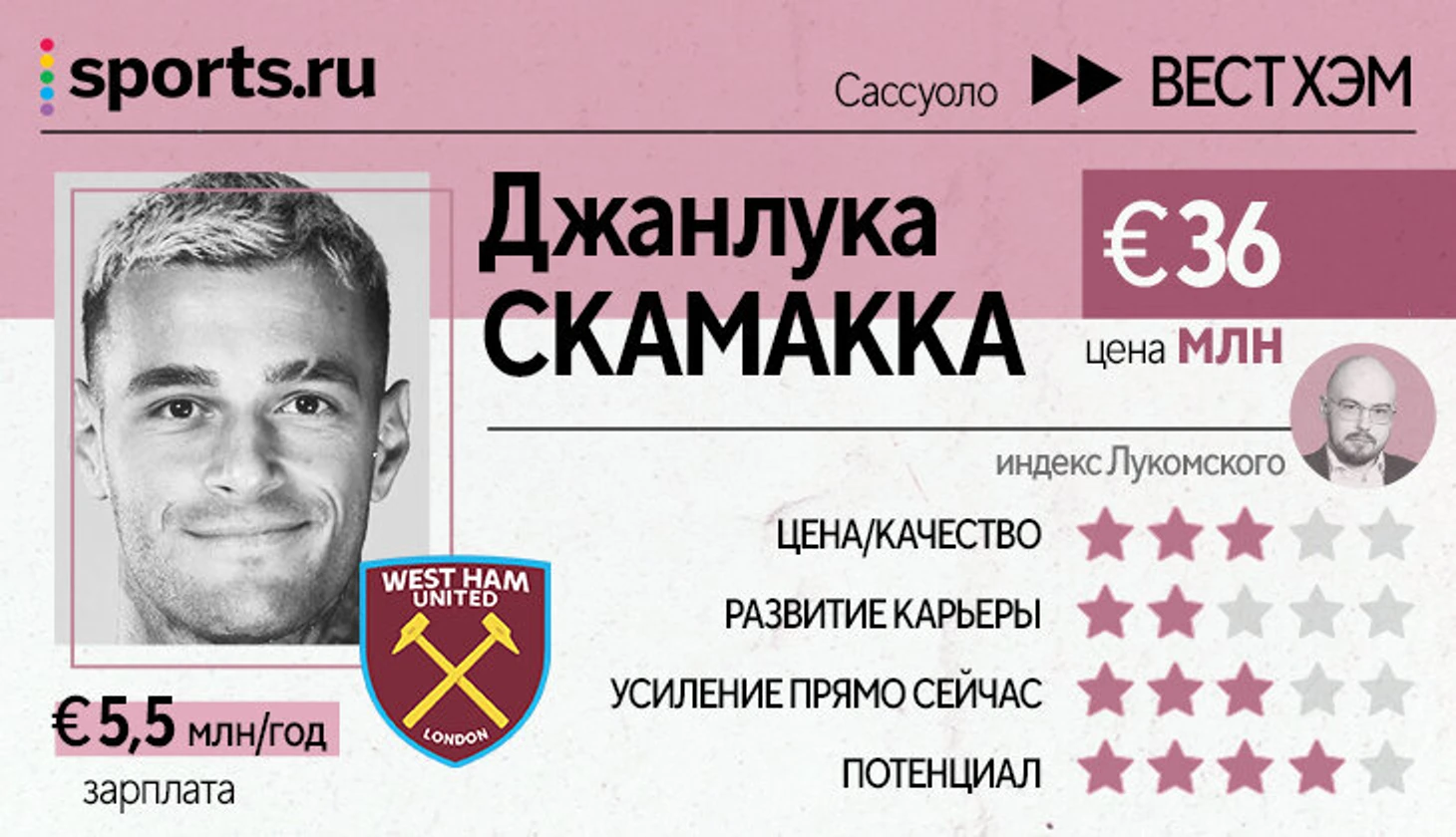 Скамакка – ценная опция на случай частых травм (хотя в прошлом сезоне в случае травм Антонио в центре выходил Боуэн, а «Вест Хэм» успешно продолжал играть без форвардов). А вот рушить основной вариант – опасный для Мойеса путь. Вписать Скамакку без разрушения этого варианта не получится.