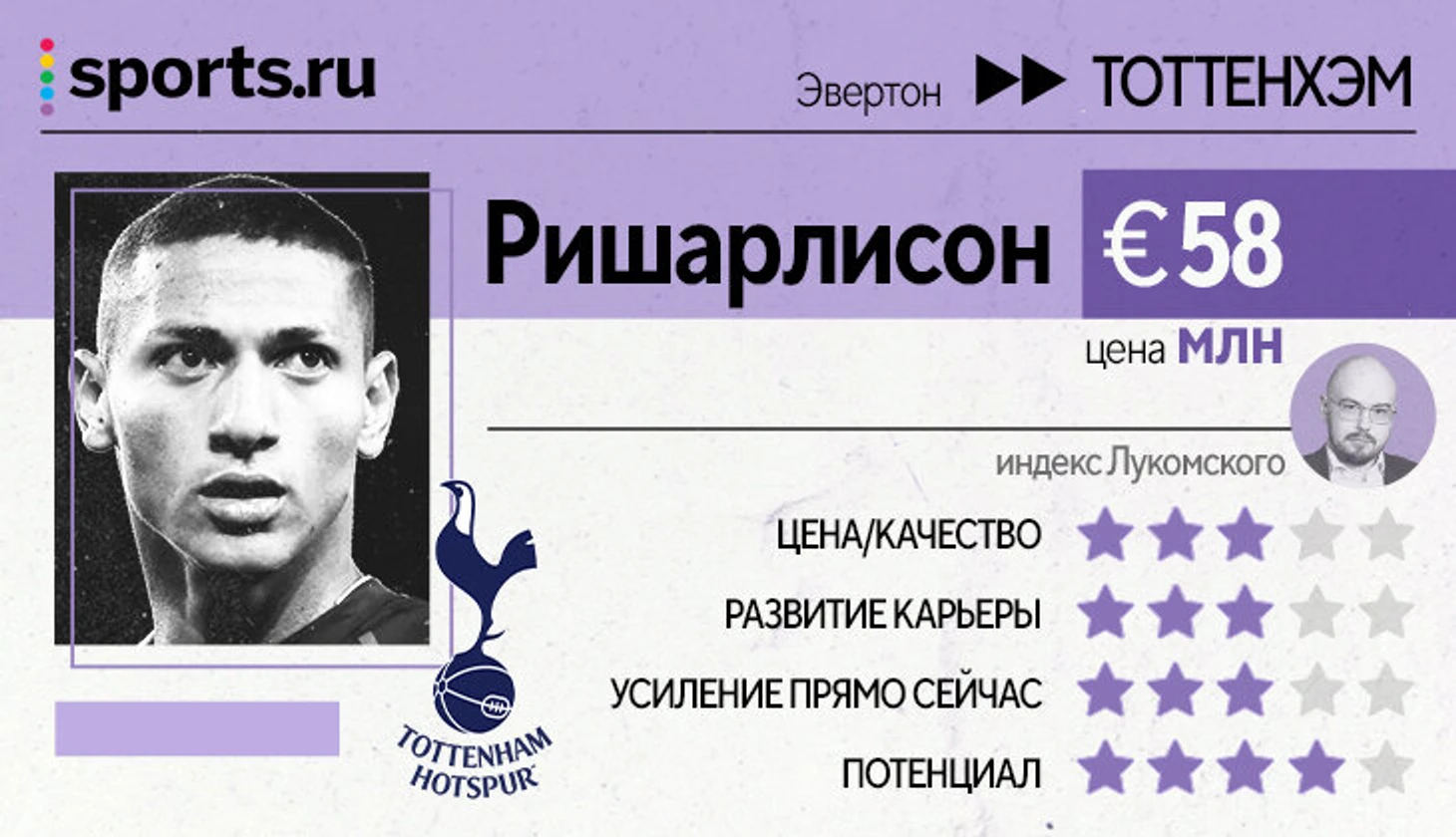 В общем, логичный трансфер «Тоттенхэма» для глубины и вариативности состава. Должен вписаться, но четкой дороги именно в старт не прослеживается.