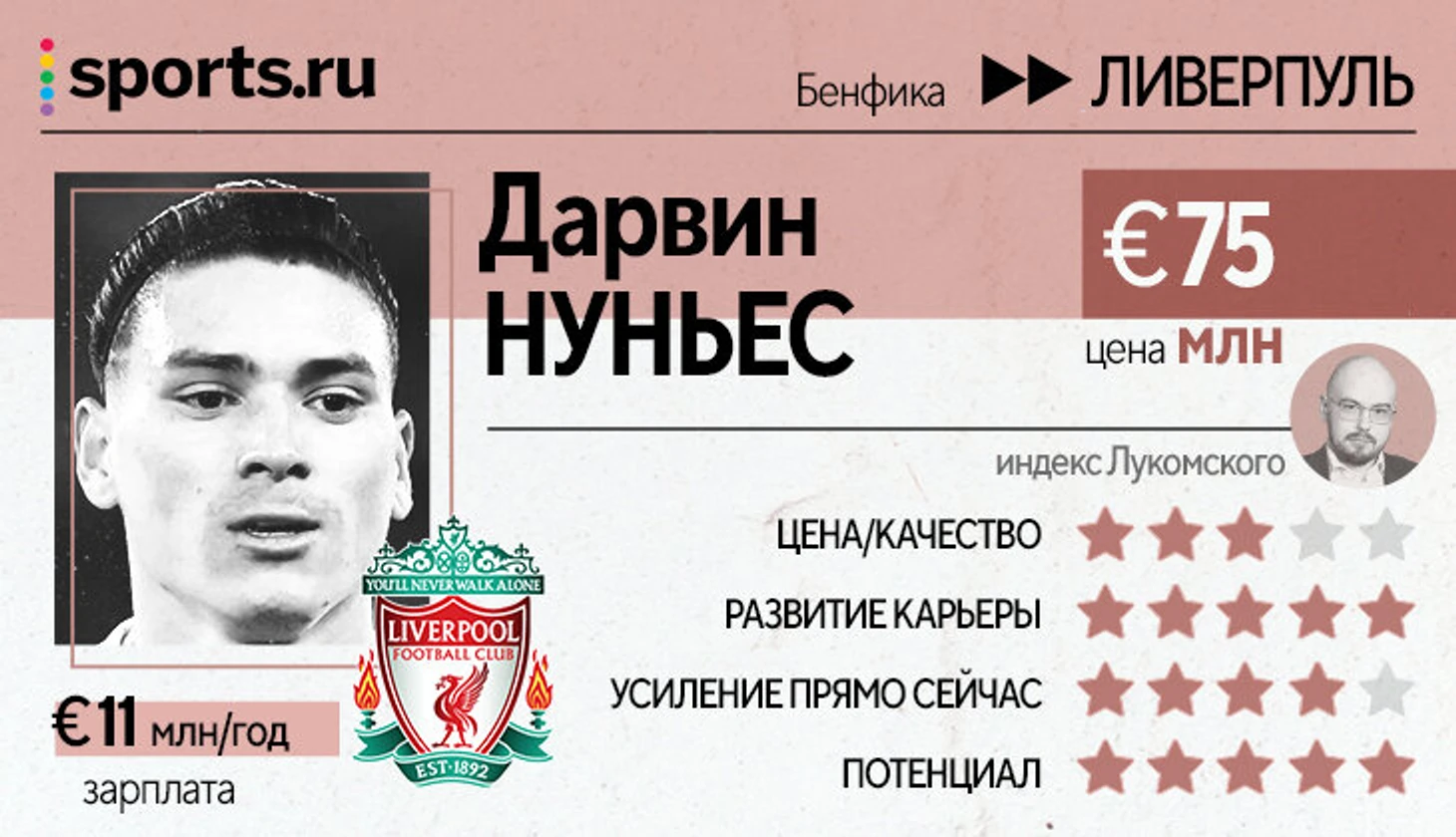 Покупка Нуньеса выглядит попыткой сохранить динамику, которая была у «Ливерпуля» в атаке в последние месяцы прошлого сезона, когда Садьо Мане играл в центре нападения. В плане движения и открываний Дарвин очень похожим образом двигался в «Бенфике». В оптимальном сценарии он способен дать и более прямую угрозу в штрафной.
