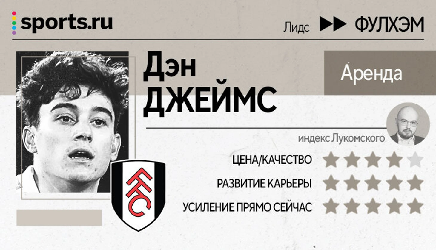 Джеймс отлично подходит «Фулхэму» стилистически. Скорее всего займет позицию правого вингера, где в первых турах играл Бобби Декордова-Рид – он тоже работяга, но все-таки не объемов Джеймса и не так опасен при контратаках.