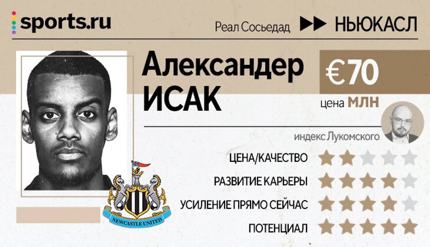Разумеется, такое стало возможно только на фоне явной переплаты. Потенциал Александера никто не оспаривает, но из-за откровенно слабого последнего сезона «Реал Сосьедад» был не в лучшей переговорной позиции. В 2021/22 Исак забил 6 голов в Ла Лиге в ситуации, когда ему регулярно создавали моменты, а он их банально транжирил («-4,9» относительно xG).