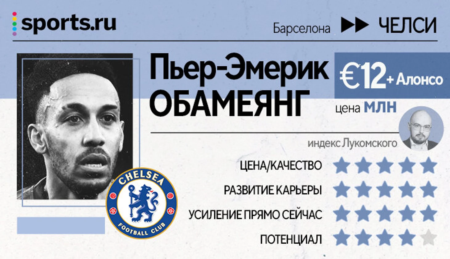 «Челси» отчаянно нуждался в удобном Тухелю топ-форварде, «Барса» – в деньгах, Обамеянгу дорогу в старт «Барсы» перекрыл Левандовски. Сделка логична для всех сторон.