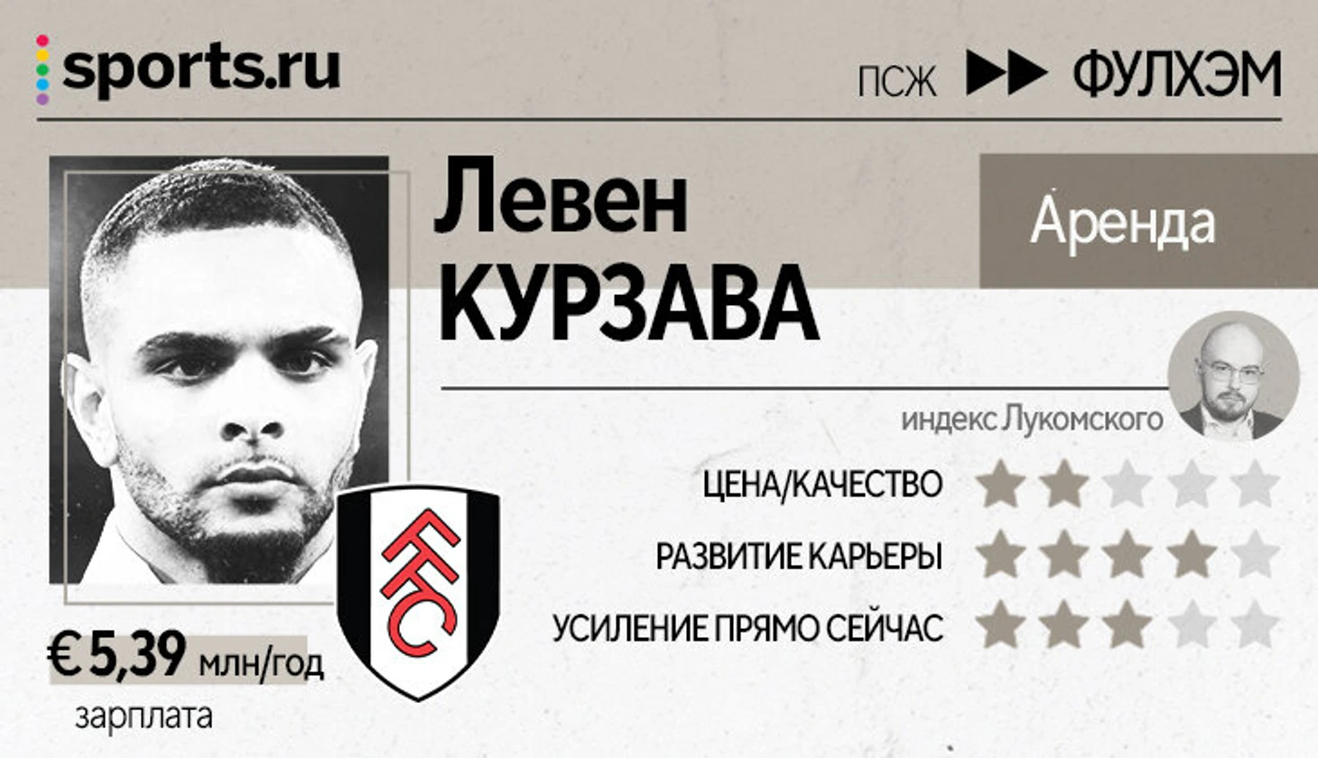 Трудно оценить текущее состояние. Больше года вообще не играл в официальных матчах. Были травмы, но в первую очередь потому что совсем не нужен «ПСЖ». «Фулхэм» берет его в качестве самого высокооплачиваемого игрока в составе – на позицию, которая весьма неплохо укомплектована (Энтони Робинсон).