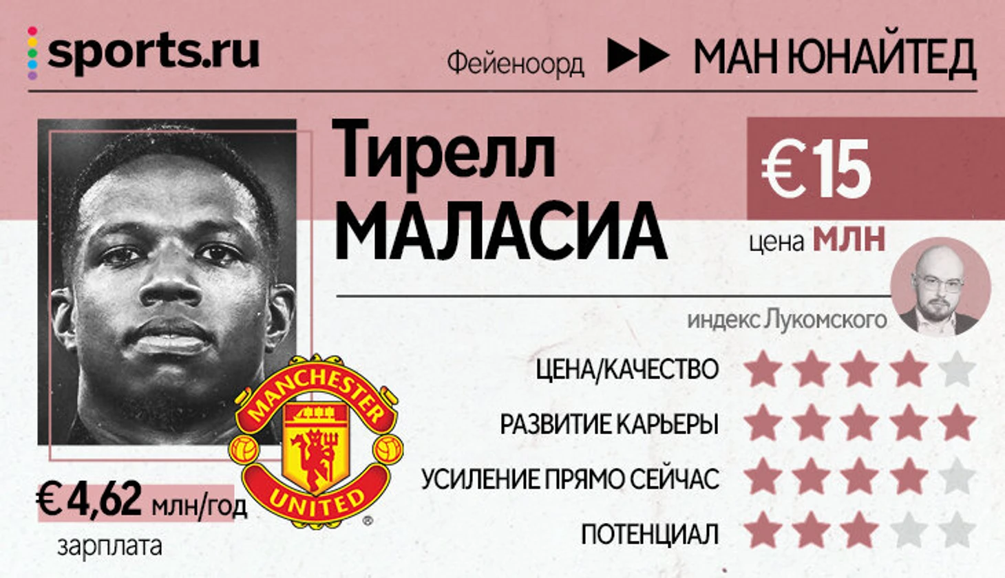 По затраченным ресурсам это трансфер для глубины состава – такую функцию Маласиа точно потянет. А если Шоу будет плохо улавливать установки Тен Хага, вполне может стать и основным.