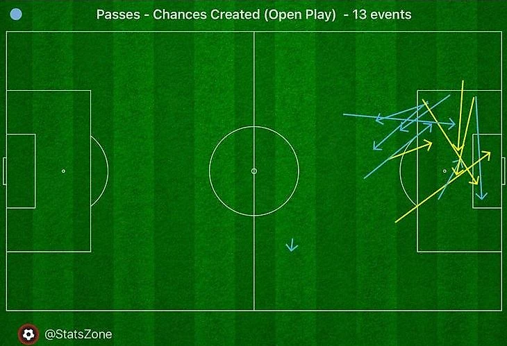 Если посмотреть на карту созданных моментов «Сити», то пугающе очевиден упор на зону в левой части штрафной.