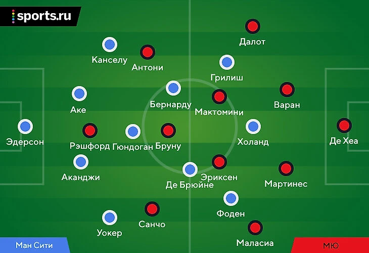У «Сити» наоборот были плохие новости перед игрой – на последней тренировке травмировался Родри. Из-за того, что Кэлвин Филлипс тоже лечится, в опорной вышел Илкай Гюндоган – для него не в новинку, но последний серьезный отрезок там проводил еще в сезоне-2018/19. Небольшой сюрприз был в центре обороны – там появились Натан Аке (мог уйти летом) и Ману Аканджи (пришел только в дедлайн). Неожиданный выбор объясняется травмами (Стоунз выбыл, Лапорт только вернулся) и выбором Пепа – оставил Диаша в запасе, потому что хотел пару из правши и левши.