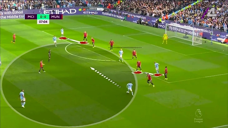 В случае удачного перевода «Юнайтед» мог воспользоваться зоной Фодена – там у «МЮ» возникал численный перевес: