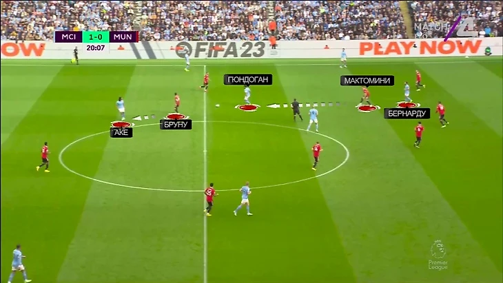 Здесь на свободного Аке выдвигается Бруну, а на Гюндогана приходится выдвигаться уже Мактомини (оставляет Бернарду):