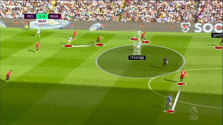 В результате у «Сити» было сразу четыре железных приема по преодолению прессинга: передачи от Эдерсона на фланги, проходы центральных защитников, опускания Холанда и смещения вингеров (Грилиша или Фодена). Невероятный арсенал для топ-матча. Какие-то напрямую приводили к моментам, какие-то косвенно, но разнообразие вариантов лишь усложняло жизнь «МЮ» – даже решив одну проблему, приходилось тут же справляться с другой.