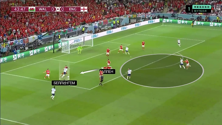 Третий сценарий – соперник реагирует и даже опускается в штрафную, но оставляет свободной опорную, как в данном случае валлиец Джо Аллен: