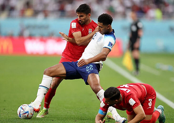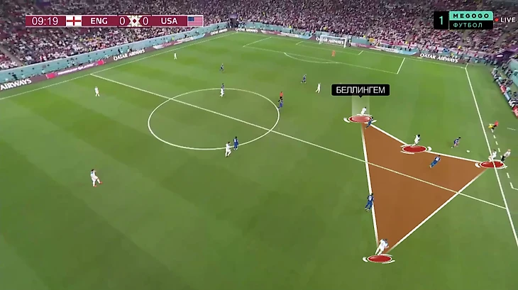Голевая передача Беллингема в матче с Ираном пришла именно в контратаке, но еще сильнее запомнились эпизоды, когда Джуд собирает вокруг себя несколько соперников и отдает на ход свободному партнеру.