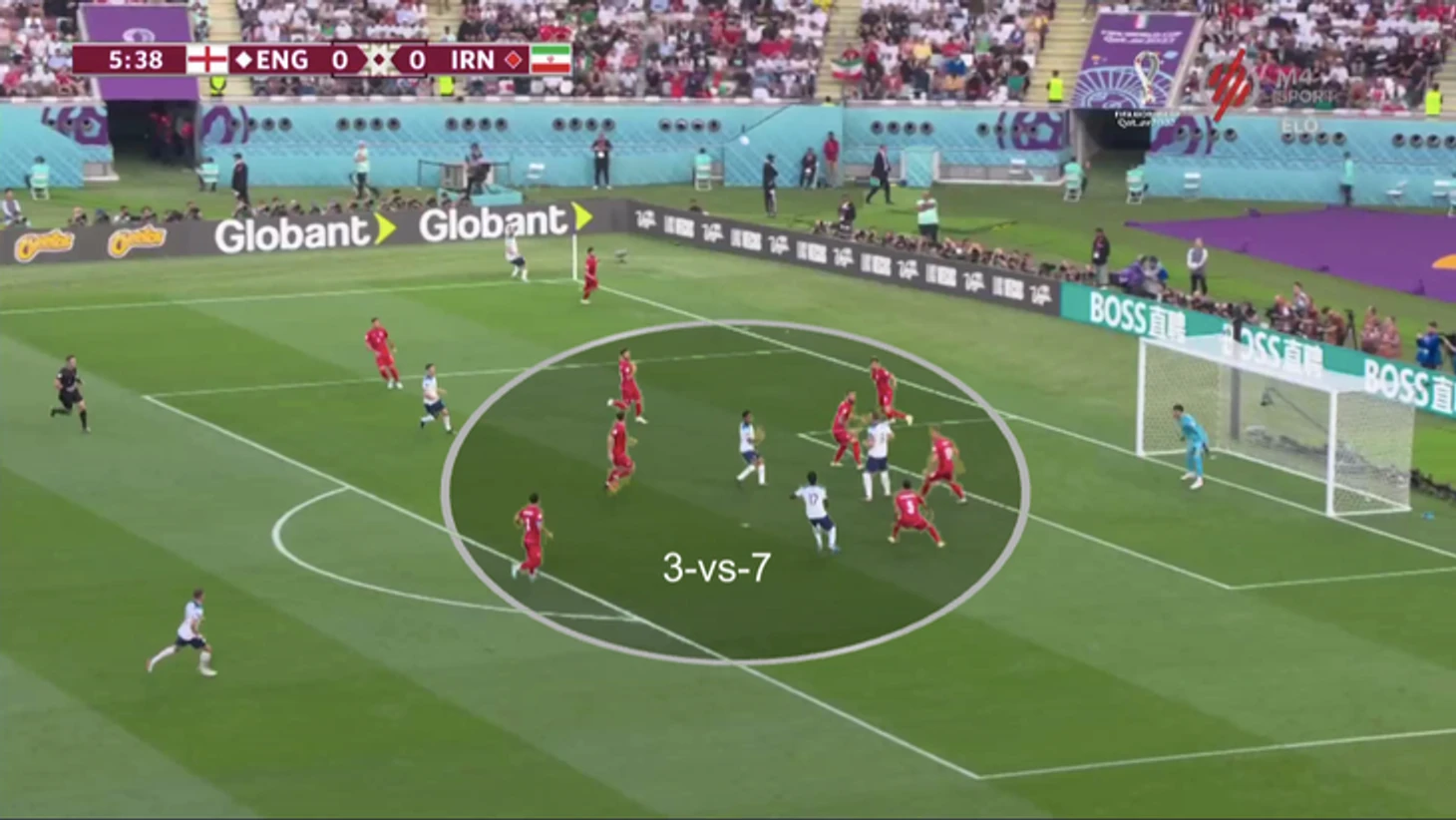 Свободное движение игроков помогает Англии развивать преимущество, когда соперник окончательно раскрылся. А вот отсутствие структуры тормозит атаки, когда соперник держит схему и не рискует. При счете 0:0 это часто приводит к ситуациям, в которых категорически тяжело продвигать мяч.