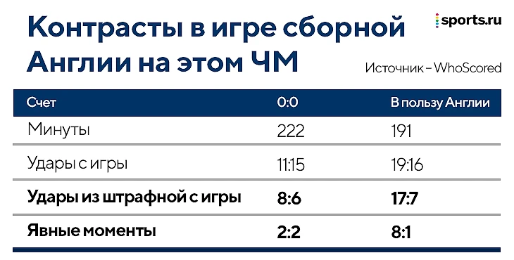 Для наглядности не только наша память, но и цифры. В Катаре англичане провели практически одинаковое время и в том, и в другом режиме (разница – всего полчаса). Контраст – огромный. При счете 0:0 – пристегнутая на все ремни игра, в которой минимум моментов в обе стороны. Когда открывает счет Англия, у соперника никаких шансов – команда Саутгейта уничтожает на пространстве и легко развивает перевес.