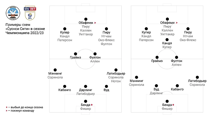 Основные прессинг-триггеры для нападающих стандартны – пас назад, затянутое владение защитником, неосторожная обработка мяча. Против команд, которые практикуют билдап через короткий пас, «Суонси» по ситуации применяет персональный прессинг.