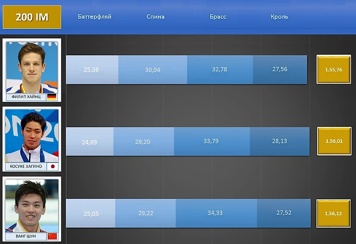 И здесь становится понятно, что этап брассом у Хайнца просто первоклассный. И сочетание баттерфляя, брасса и кроля, по большому счёту, тоже. Всё отставание от американского дуэта зарыто на этапе на спине.