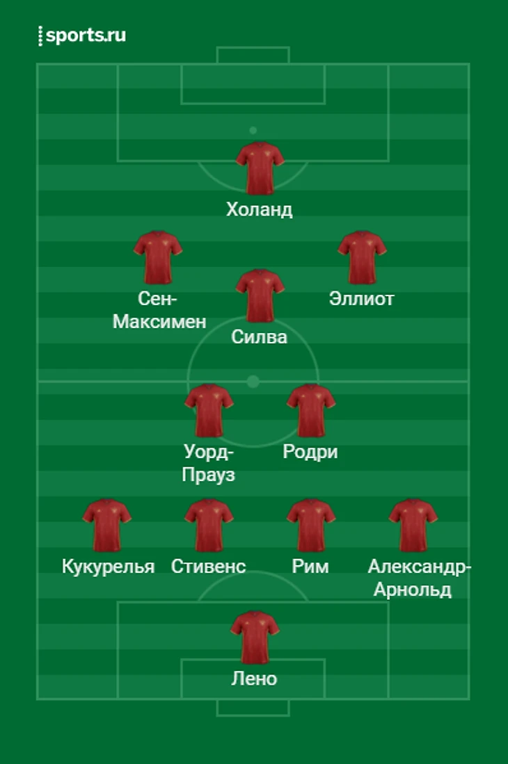 Фланги атаки - справа Харви Эллиот (4,89 SCA), слева Аллан Сен-Максимен (5,79 SCA).