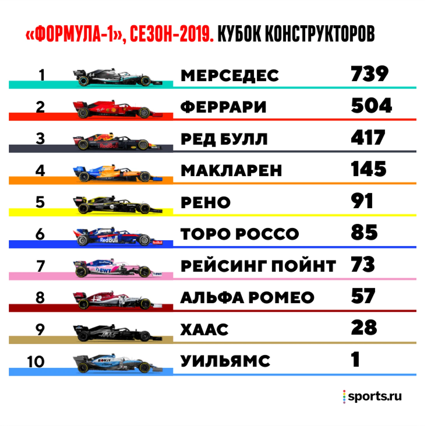 Расстановка сил среди трех лучших команд «Формулы-1» не меняется уже третий сезон: в 2019-м «Мерседес» набрал на 235 очков больше «Феррари», а Скудерия превзошла «Ред Булл».