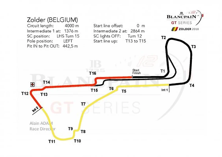 Золдер - трасса старой школы, подходящая для гонок GT: недлинные прямые, медленные шиканы, небольшой перепад высот и слепые повороты - он не изобилует трудностями для пилотов и автомобилей, лишь изредка бросая вызов своей конфигурацией, хотя сочетает в себе интересные моменты, как поворот №7. Максимальная скорость на прямых не достигается, но в виражах проверяется устойчивость автомобиля, делая автодром ареной для равного соперничества разных по скорости и конструкции автомобилей, не очень широкая трасса влияет на управление. Малое количество мест для обгонов на 4-километровом кольце повышает важность квалификации, которая будет проводиться двумя разными пилотами к двум гонкам: гонка 1 - пилот 1, гонка 2 - пилот 2.