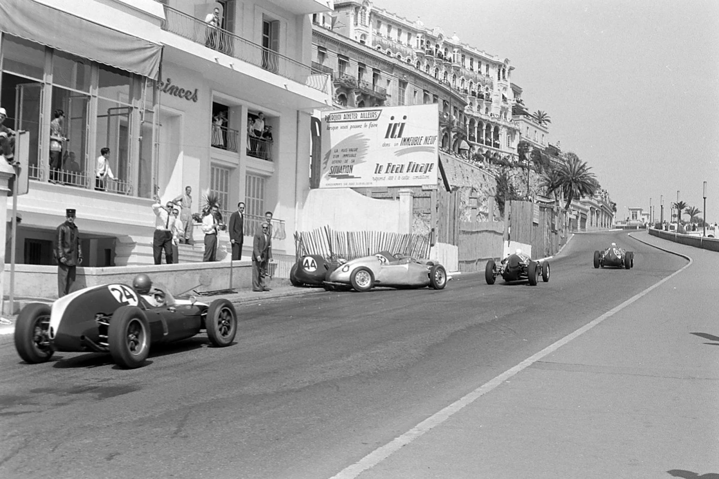 На фото показано Монако 1959 года, когда Джек Брэбем за рулем «Купер-Климакс» мчался в погоне за Бера («Феррари») и Моссом («Роб Уокер Купер») на пути к первой победе в карьере и титулу.
