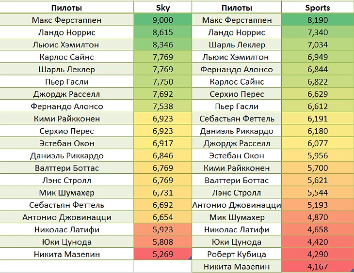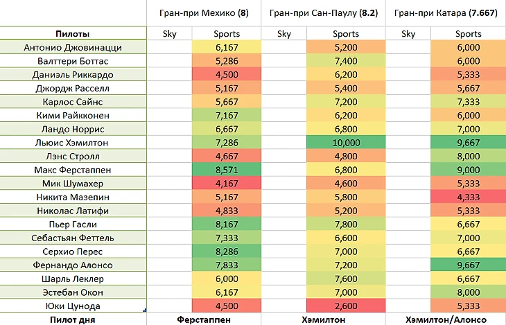 Оценки пилотам на Гран-при Катара (7.667 балла):