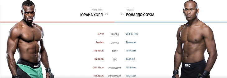 Uriah Hall (16-9) vs. Ronaldo Souza (26-8-0, 1)