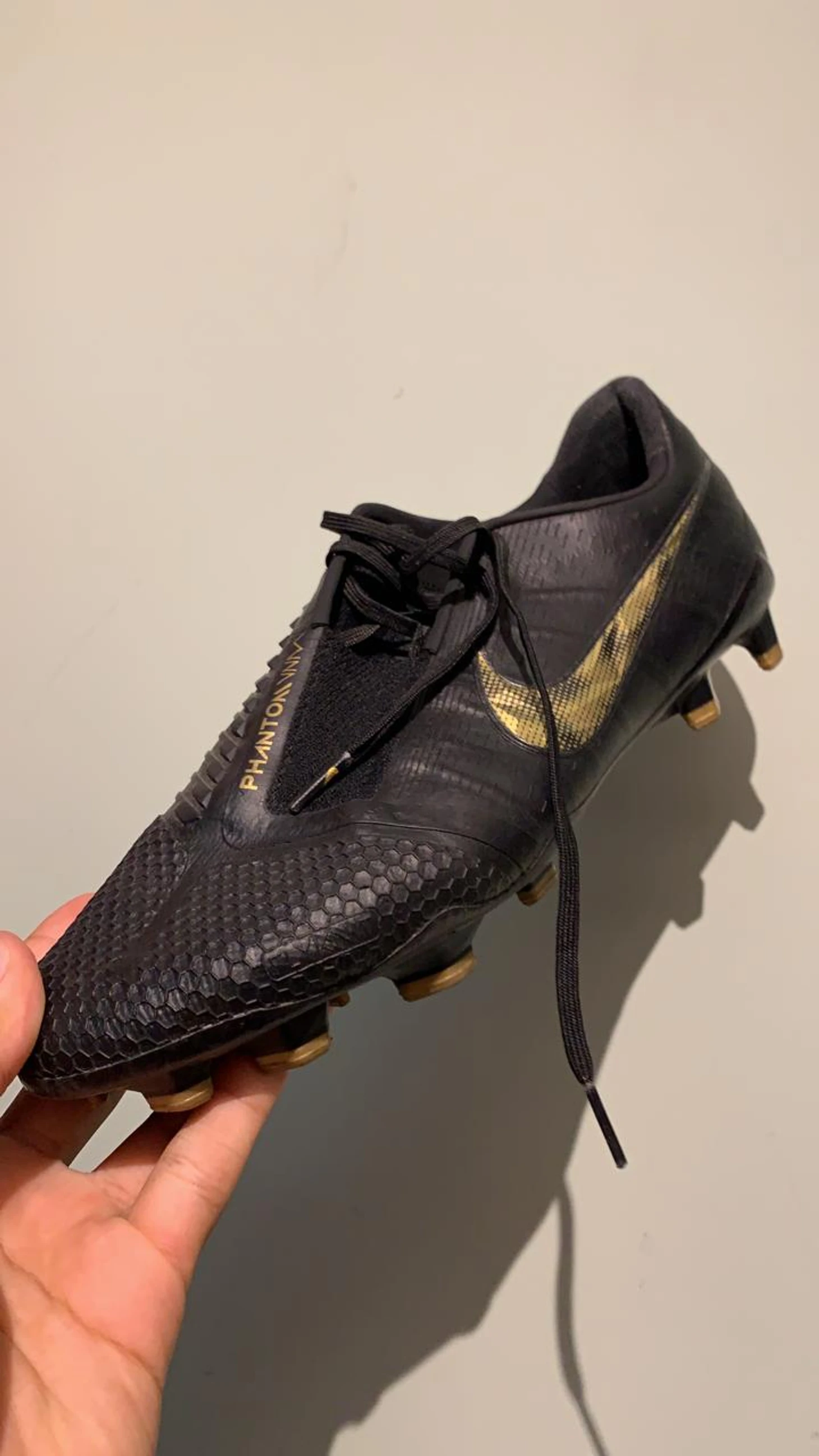 Темыч передал нам на прокачку черные Nike Phantom Venom Elite, которые он уже использовал в играх и на тренировках. Вот так бутсы выглядели до нашего вмешательства:
