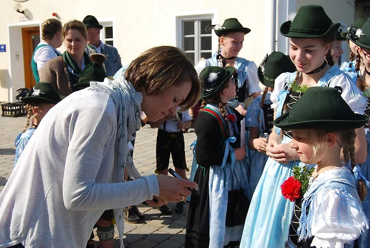 Я до сих пор не могу найти в них чрезмерную спортивную мотивацию. Оба активны. Старшая (Врени, 5 лет) катается на горных лыжах, и мы уже катались на беговых лыжах. Когда она смотрит биатлон, яркие костюмы её больше всего привлекают. Я не заставляю ее становиться биатлонисткой. Она должна всё решить сама. Если она пойдет по спортивному пути, я, естественно, поддержу ее на 100 процентов. Малыш (Йозеф, 3 года) уже был на беговых лыжах. У нас есть тропа прямо перед домом. Беговые лыжи похожи на велосипедные прогулки.