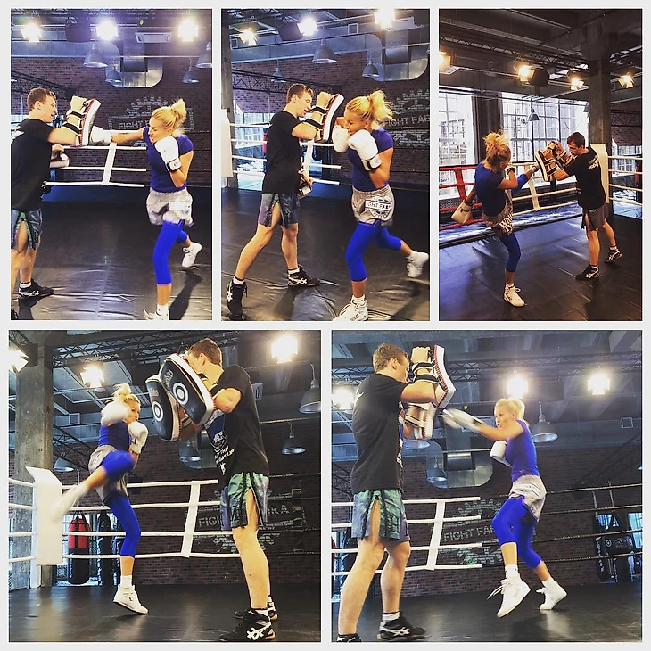 Елена занимается хоккеем на любительском уровне и собрала в Питере женскую команду «Red Rocket». Кроме того, она с 12 лет занимается тайским боксом и сейчас возглавляет бойцовский клуб «Fight Fabrika». Неудивительно, что в ее соцсетях иногда можно найти такие картинки: