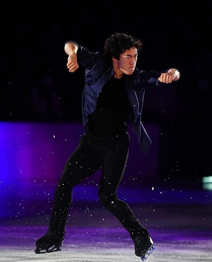 А какая синхронность на прыжке! Причем Нейтан прыгает флип, а Шома - риттбергер, но это абсолютно не помешало. GOE +5!)