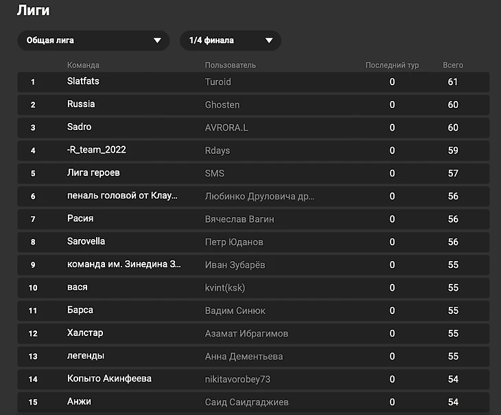 А вот так выглядит топ-15 лучших игроков в 1/4 финала Fantasy ЧМ: