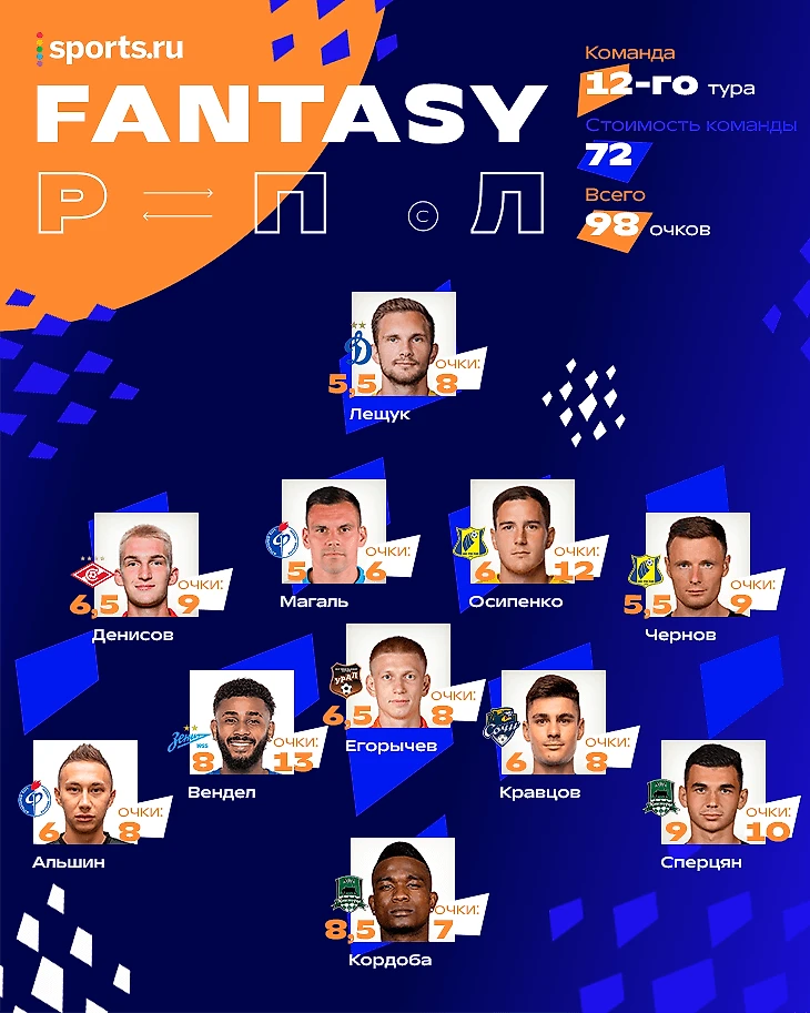 Сборная 12-го тура Мир РПЛ в фэнтези.